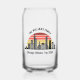 Personalized Chicago Illinois vacation can glass with a silhouette of the city skyline in front of a cool sunset. Cool trip keepsake souvenir for a family trip.