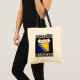 Klassisches Design-Schild mit dem Text Chicago Bosnian und den Flaggen der Stadt Chciago und Bosnien und Herzegowina