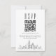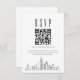 Eine minimale Hochzeitsrsvp QR-Code-Karte mit einer schönen stylisierten Skyline, die die Stadt Chicago repräsentiert. Ersetzen Sie den QR-Code durch einen Link zu Ihrer Website, um Ihre zukünftigen Gäste bei der Beantwortung Ihrer Hochzeitsfeier zu unterstützen.
