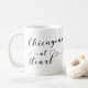 Chicagoan at Heart Tasse. Egal ob Sie Chicagoer sind oder in Chicago wohnen, Familie oder Freunde in Chicago haben, oder wenn Sie einfach alles mit der großartigen Stadt Chicago Liebe haben! Dieses stilvolle Skript-Design zeichnet sich durch ein kleines Herz mit der Stadt Chicago Fahne.