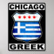 Das griechische Design von Chicago im Stil eines coolen amerikanischen Wegweises. Der Text Chicago Griechisch ist oben und unten, mit der Flagge der Stadt Chicago und der Flagge von Griechenland im Schild der Route. Ideal für Chicagoer mit griechischer Abstammung und für Ex-Pats in der Windy City.