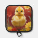 Cute chick with flowers, is featured on this colorful pot holder for the Easter Holiday. Use yourself or give as a gift, has silver quilted heat protection and a hanging loop. .