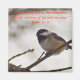 Ein fröhlicher kleiner Kicherling sitzt in einem Baum und nennt seinen Namen: Chick-a-dee-de-dee. Nachricht: "Ich kenne jeden Vogel in den Bergen, und die Geschöpfe des Feldes gehören mir." Psalm 50:11
