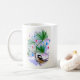 Diese farbenfrohe Tasse besticht durch eine süße Kiche in einem immergrünen Baum mit Dekorationen. Ideal für die Ferienzeit oder zu jeder Jahreszeit!