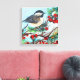 Chickadee Bird mit Berries am Zweig Leinwanddruck