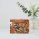 Diese Kunsthandwerkskarte zeigt einen süßen Spatz in einem Heidelbeerbusch. Die Blätter sind in den Herbstfarben Rosa, Rot und Gelb gehalten.