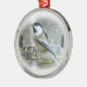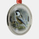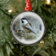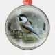 Eine Baumverzierung mit einer Fotografie eines schwarzen-cappped Chickadee.