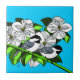 Schwarz gekappte Chickade und Dogwood Blume mit schwarzer Kontur auf hellblauem Hintergrund