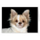 Creme oder Faun und weiße, langhaarige Chihuahua Foto Grußkarte
