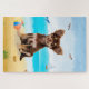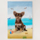 Ein niedlicher Hund am Strand ist eine Geschenkidee für jemanden, der diese Hundezucht Liebe.
