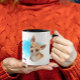 Ein wunderschönes Portrait eines kleinen braunen Chihuahua-Hundes ist das Werk auf beiden Seiten dieser Tasse. Jedes Bild wird auf einem hellblauen Spatterhintergrund platziert. Zwischen den beiden Bildern ist der Text, der diese loyale Begleiter mit "Big Dog" Haltung beschreibt. Der schwarze Text an der Unterseite sagt "der CHIHUAHUA Hund". Der gesamte Text ist leicht auf alles angepasst, was Sie bevorzugen; beschreiben Sie Ihren eigenen treuen kleinen Freund!