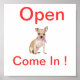 Dieses niedliche kleine Chihuahua ist ideal für Ihr tierbezogenes Geschäft. Es steht: "Öffnen Sie rein!" Wir haben auch Schilder, die sagen Sorry Closed !