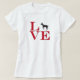 Für Hunde und Chihuahua Liebhaber. Das Wort "LIEBE" ist rot und mit dem "O" abgestapelt, das durch das Bild eines Chihuahua ersetzt wird. Es gibt auch eine Version für dunkelfarbene T-Shirts.