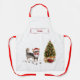 Dieser chihuahua Hund mag klein sein, aber er ist groß auf Abenteuer! Dieser Hund ist stehend und wartet gespannt auf Weihnachten im Schatten eines verzierten Weihnachtsbaumes.