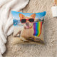 Dieses niedliche Foto verfügt über einen Chihuahua-Hund am Strand, der eine Gay Pride-Fahne mit Regenbogen trägt.