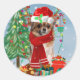 Chihuahua Hund im Schnee mit Weihnachtsgeschenken Runder Aufkleber