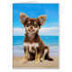 Chihuahua Hund sitzt am tropischen Strand