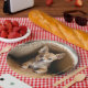 Chihuahua Hund unter einer Rug Pappteller