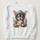 Ein zauberhaftes Chihuahua mit einem gekleideten Sweatshirt, umgeben von Kaffeetassen und köstlichen Getränken. Eine künstlerische und skurrile Repräsentation, die sich ideal für Entspannung, Kaffeekultur und niedliche Lebensweise von Haustieren eignet.