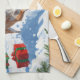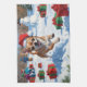 Chihuahua läuft in Schnee mit Weihnachtshut Geschirrtuch