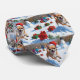 Chihuahua läuft in Schnee mit Weihnachtshut Krawatte