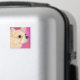 Chihuahua mit langem Haar auf rosa und orangefarbenem Hintergrund.