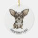 Niedlicher Chihuahua Hund mit großer Augenillustrierung. Zitat sagt: "Chihuahua Mama", aber Sie können es personalisieren, um zu sagen, was Sie gewollt haben. Weihnachtsornament.