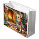 Chihuahua Sitting Fireplace with Christmas Lights Große Geschenktüte