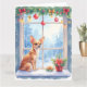 Chihuahua Snowy Windowsill Holiday Christmas Art Karte