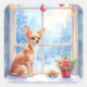 Chihuahua Snowy Windowsill Holiday Christmas Art Quadratischer Aufkleber