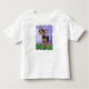 Tierparade Chihuahua Hunde T - Shirt und Sweatshirts zeigen unseren niedlichen Schwarz-Bein Hund Charakter stehend in einem Grashof mit einem strukturierten blauen und lila Himmel mit einer spielerischen, lila Grenze, die von unserem talentierten Kinderillustrator Traci Van Wagoner gemalt wurde. Sehen Sie, wie der niedliche kleine Hund mit diesem lustigen Kunstwerk des spielerischen Junghundes vorne und des Schwanzes des lustigen Hundes auf der Rückseite kommt und geht. Zeige deine beste Seite, heute zu kommen und zu gehen und bring ein Lächeln in die Welt. Woof!