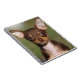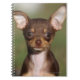 Chihuahua-Welpe, der Kamera betrachtet Notizblock