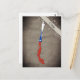 Postkarte mit Umriss von Chile, gefärbt in den Farben der Nationalflagge.