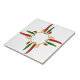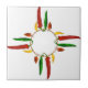 Das Zia-Symbol des New Mexico Staat ist hier in New Mexico mit einem roten, Chile, einem grünen Chile, einem Habanero Pfeffer und einem Bananenpfeffer vertreten.