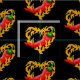 Pfeffer aus rotem Chili mit herzförmiger Flamme. Benutzerdefinierte Hintergrundfarbe. Nahtloses Muster.