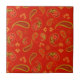 Chili Pepper Red and Lime Green Paisley Pattern Fliese
