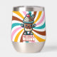 Niedlicher Cartoon Schokolade schütteln Maskottchen mit dem Text "Chill". Schokolade Milchshake mit Sahne und einer Kirsche auf dem oberen Cartoon.
