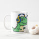 Entspannter und lustiger Dinosaurier, der Musik mit Kopfhörern genießt. Ein lustiges Design für Musikfans und Dinosaurier-Liebhaber gleichermaßen. Ideal für Aufkleber, Tasse, Bekleidung und Digital Art Fans.