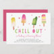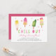 Die bezaubernde Party Einladung für die sommerliche Geburtstagsparty Ihres Kleinen zeigt Aquarellbilder in lebhaften Rosa- und Kalkgrün, darunter "Chill out" in skurrilen Ausschnitt-Schriften. Personalisieren Sie Ihre Geburtstagsfeierdetails unten. Die Karten werden in solides Rosa umgeschaltet.