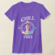Frau meditiert Grafik mit Text, "Chill Vibes" entspannend, aufgeklärtes Gefühl.