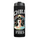 Frau meditiert Grafik mit Text, "Chill Vibes" entspannend, aufgeklärtes Gefühl.