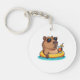 Dies ist eine lustige, leichtsinnige Illustration einer Capybara, die einen entspannenden Tag genießt. Die Capybara trägt eine coole Sonnenbrille und schwimmt in einem Becken auf einer gelben Innenröhre und hält ein tropisches Getränk mit einem kleinen Schirm. Der Kunststil ist ein gepflegter, moderner Cartoon. Das Ambiente ist ruhig, glücklich und ein wenig faul - ideal für Sommer- oder Urlaubsthemen.
