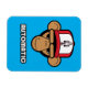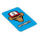Ein Schimpanse mit einem Roboterhut. Der Hut ist überall weiß und rot.