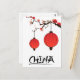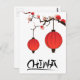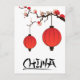 China Lanterns Reiseplakat drucken. An einem blühenden Baumzweig hängende chinesische Himmelsfeuerlaternen.