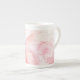 Eine hübsche, blumengeschmückte Knochen-China Tasse mit einem blassrosa, floralen Aquarell.