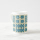 Eine schicke China-Kaffee-Tasse mit einem Muster traditioneller walisischer Tapisserie-Motive in Navy Blue auf einem Sable-Hintergrund. Dieses Muster passt in alle Tasse.