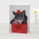 Chinchilla mit rotem Oberhut und Herzkarte Karte