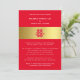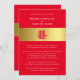 Speziell für eine chinesische Hochzeit konzipiert, enthält diese Karte das Symbol "Doppeltes Glück". Das "Double Happiness", das xi oder "hsi" auf Mandarin buchstabiert und "shuang-xi" ausgesprochen hat, ist ein bekannter chinesischer Charakter, der traditionell in chinesischen Hochzeiten als Symbol für Liebe, Glück und Glück für das neu hochzeitsfeierliche Ehepaar verwendet wird. Die Verwendung der Farbe Rot ist eine gute und beliebte Farbe in der chinesischen Kultur, symbolisiert Glück, Glück und Freude. Während die goldene Band Wohlstand und Wohlstand symbolisiert. Auf der Rückseite der Karte befindet sich auch eine goldene Band mit den Initialen des Ehepaares.