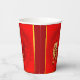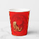 Einfache goldene Tiger-Papier geschnitten in einen verzierten Kreis mit chinesischer Laterne und Fu-Ideogramm (was Luck bedeutet), Blüten und Chinesen grüßen in kleinen Kreisen unter dem Tiger + "Jahr des Tiger" in Handschrift Stil + Fu-Ideogramme als Hintergrund. Design auf Party Papier Becher mit Zazzle's Filter für Chinesisches Neujahr des Tiger 2022.