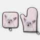 Chinesisch gezapftes Powderpuff Weiße Malerei Ofenhandschuh & Topflappen-Set